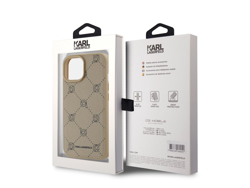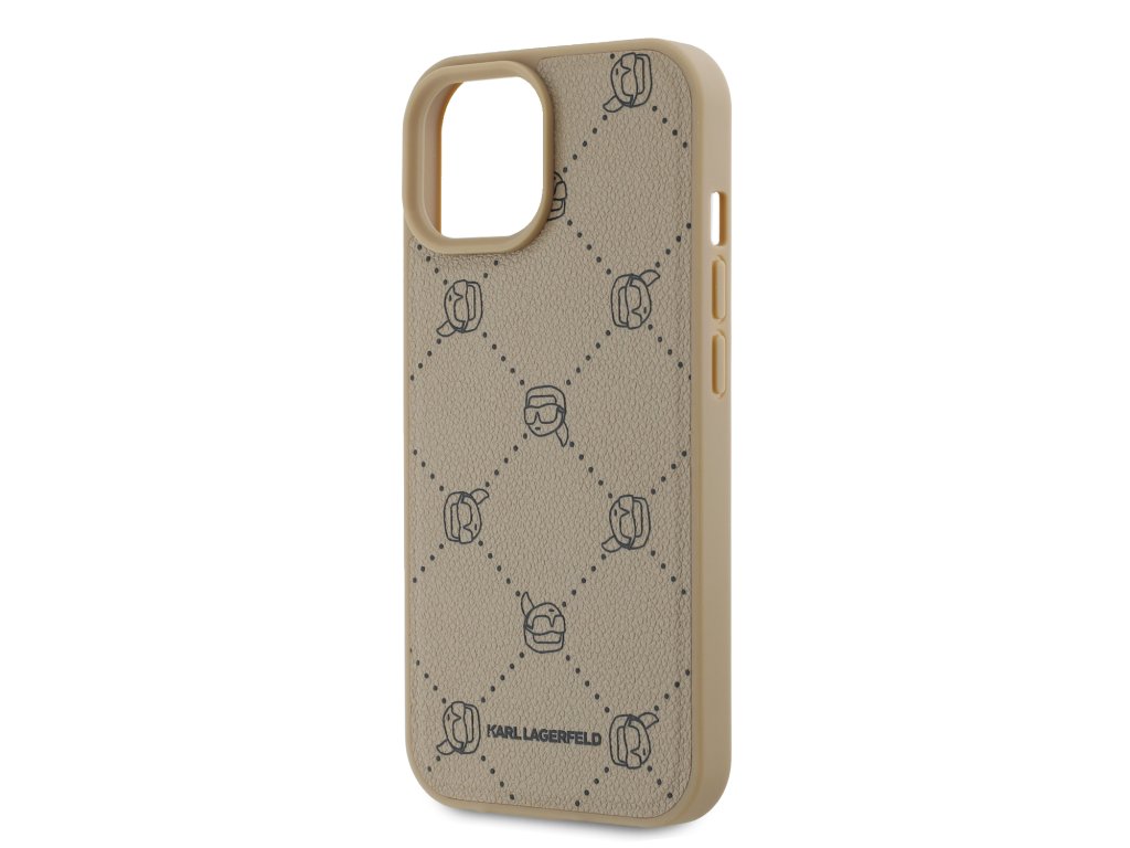 Karl Lagerfeld PU Karl Heads Pattern Magsafe Zadní Kryt pro iPhone 15 Beige